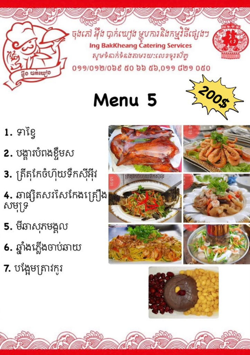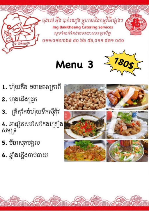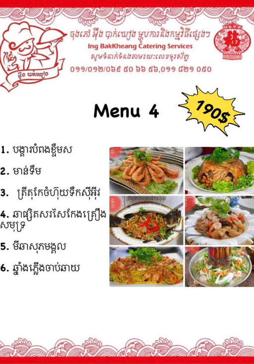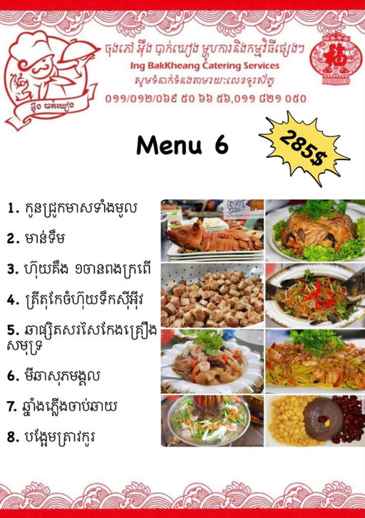 ចុងភៅ អុឹងបាក់ឃៀង ម្ហូបការនិងកម្មវិធីផ្សេងៗ Ing BakKheang Catering Services